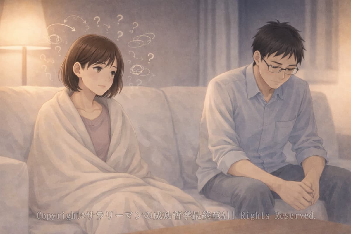 夫婦のすれ違いって、派手な喧嘩よりも、こういう“静かな消耗”のほうがつらかったりします。